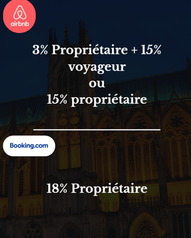 Sur Airbnb, les frais sont environs toujours aux alentours de 15% tandis que booking est généralement situé entre 15 % et 18 % du prix de la réservation.